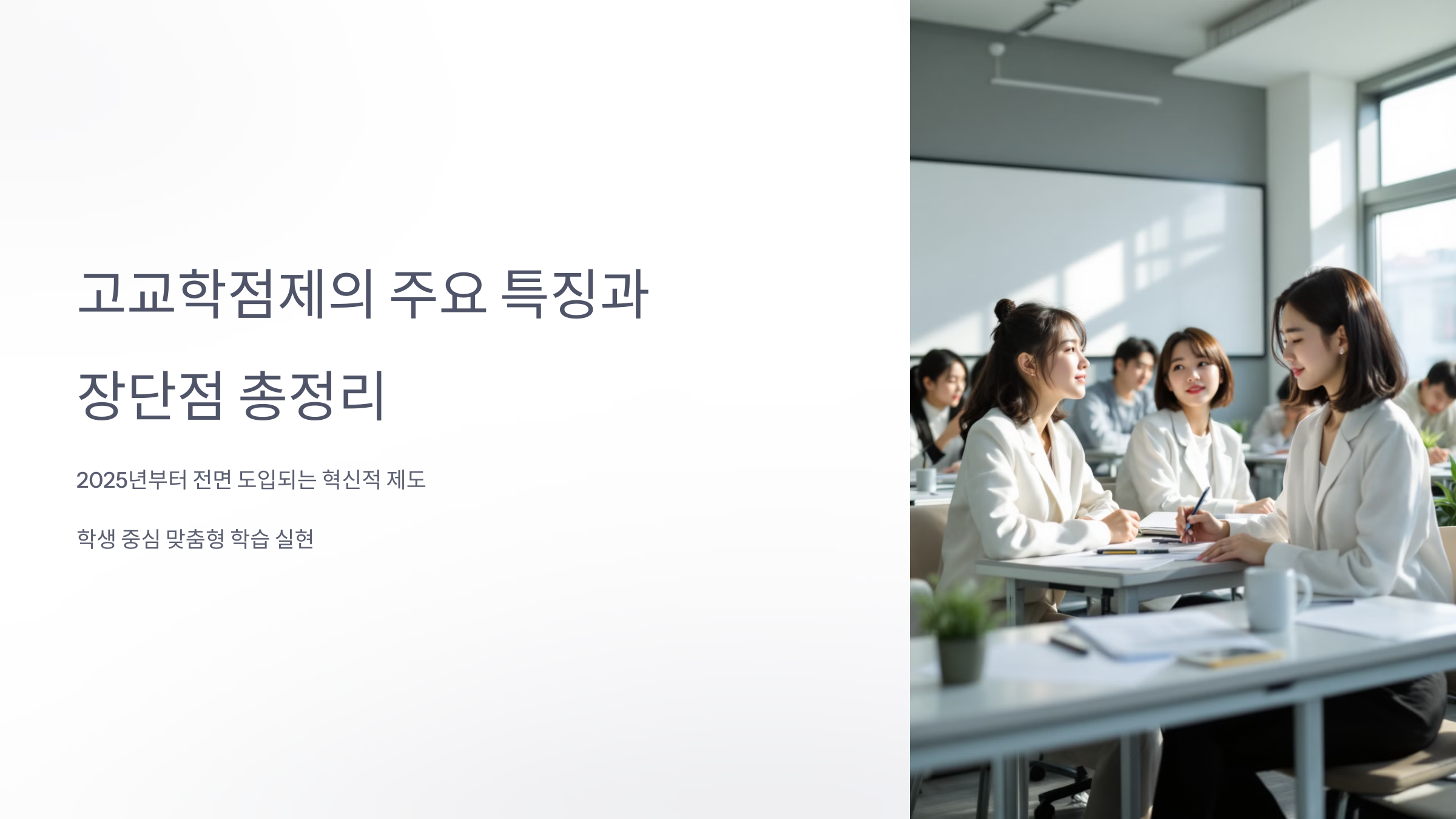 2025년부터 모든 고등학교에 전면 도입되는 고교학점제는 기존의 교육 방식에서 벗어나 학생 중심의 맞춤형 학습을 실현하는 혁신적인 제도입니다. 이번 글에서는 고교학점제의 주요 특징과 함께, 이를 도입함으로써 나타나는 장점과 단점을 정리해 보겠습니다.