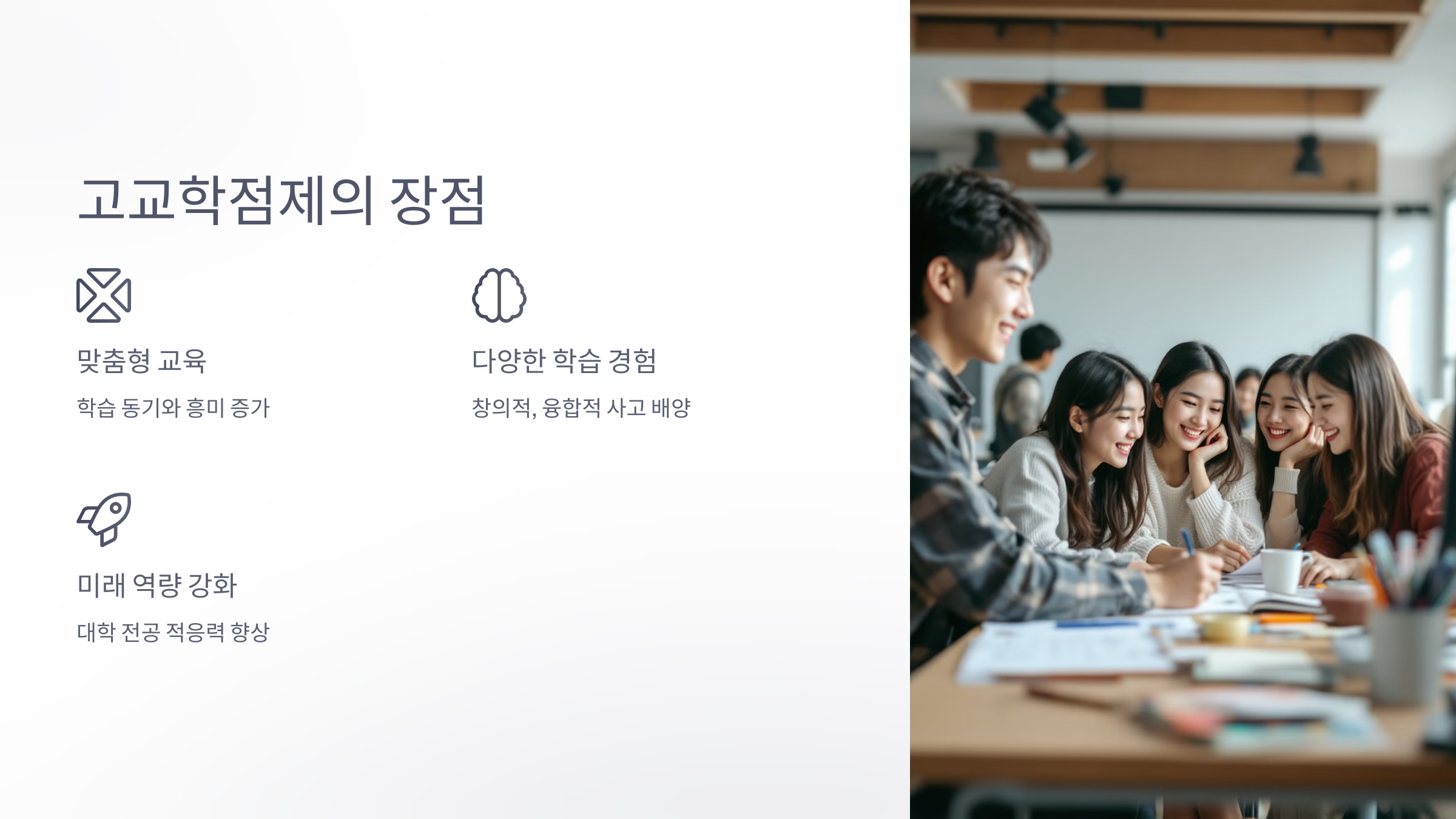 - 학생 스스로 진로에 맞는 과목을 선택하므로 학습 동기와 흥미가 증가합니다.