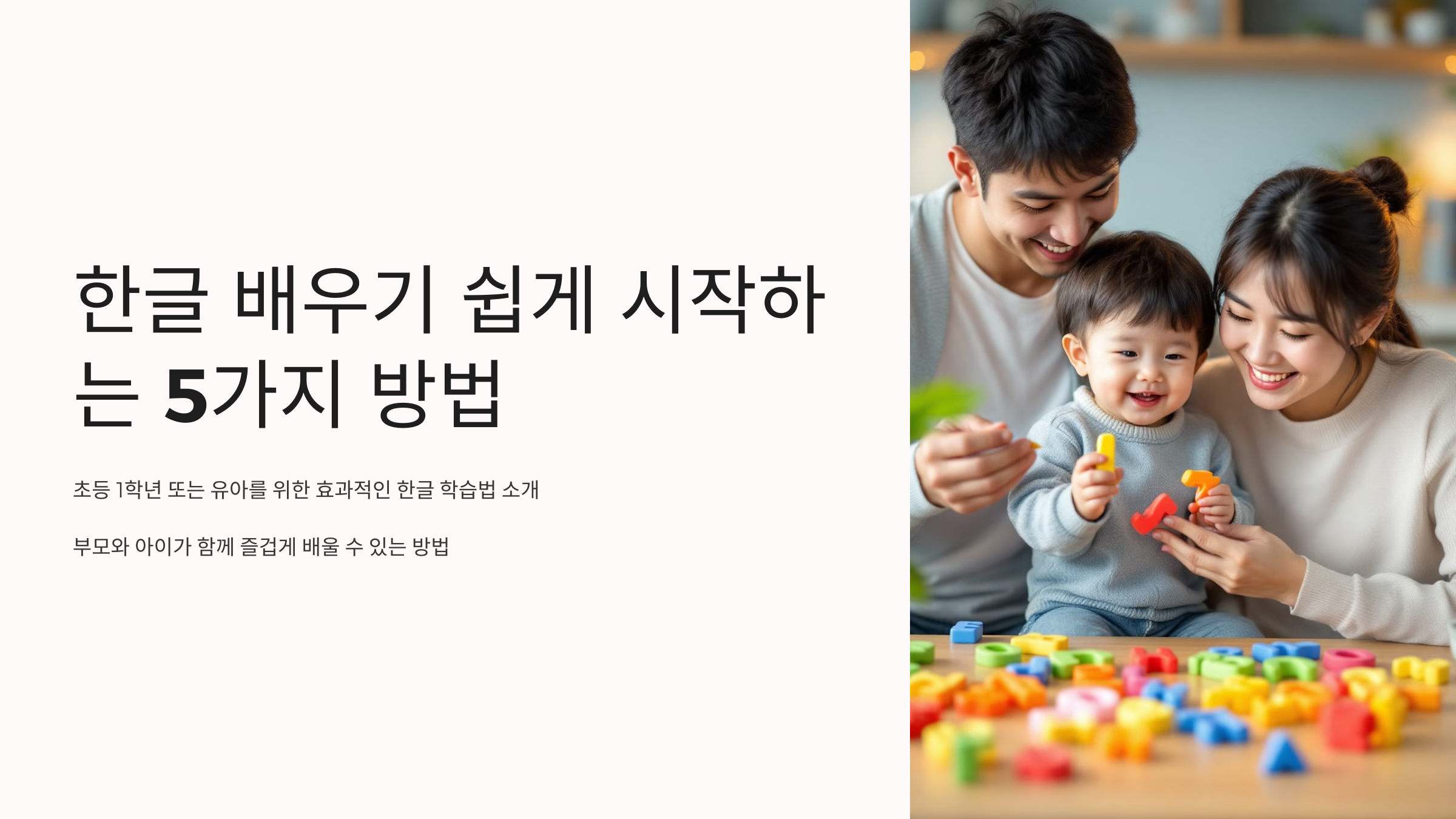 초등학교 입학을 앞두고 한글을 배우기 시작하는 시기는 부모와 아이 모두에게 중요한 단계입니다. 이 글에서는 초등 1학년 또는 유아가 한글을 쉽고 재미있게 배울 수 있는 다섯 가지 효과적인 방법을 소개합니다. 이러한 방법은 학습 효과는 물론이고 부모와 아이가 함께 학습에 재미를 느낄 수 있도록 도와줍니다. 😊